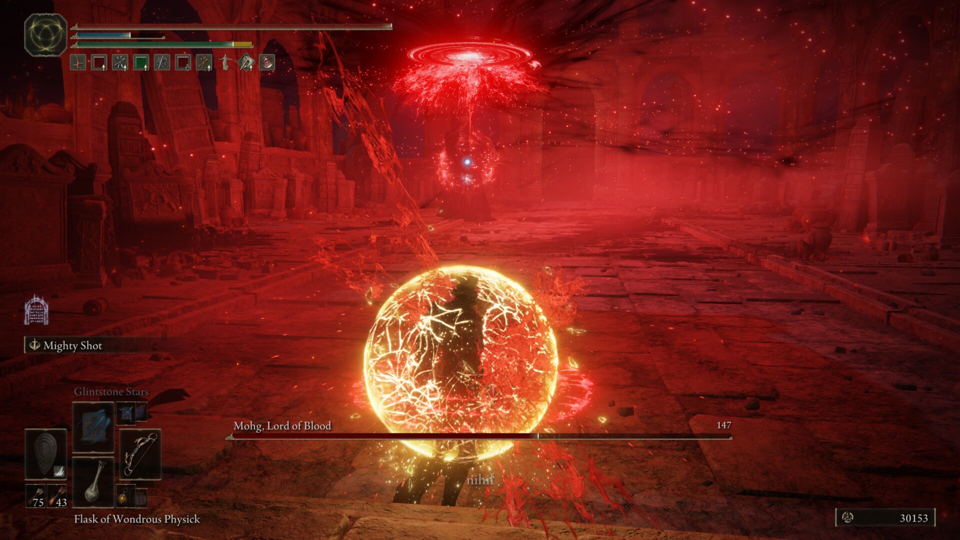 Now that you have both items, make sure they’re equipped and head inside Mohg Lord of Blood’s arena. Also, for the sake of clarity, I fought this boss while prioritizing ranged combat only, but I did take note of its abilities: