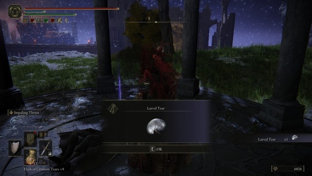 - If you check the chapel to the right, you can grab a Larval Tear. This is used to reset your character’s attributes when you talk to Rennala.