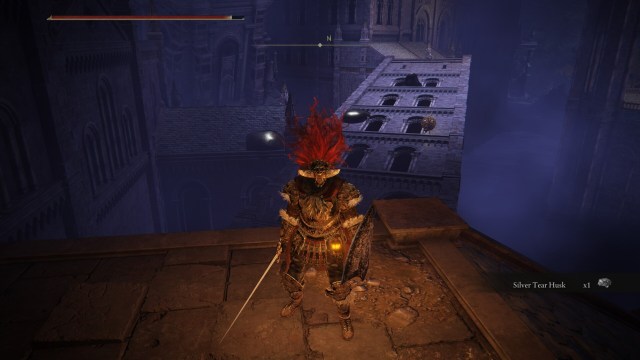 From here, walk gingerly across ledges and fallen structures since you still need to find a bonfire. The initial enemies here are Black Slimes, and they’re fairly easy to defeat.