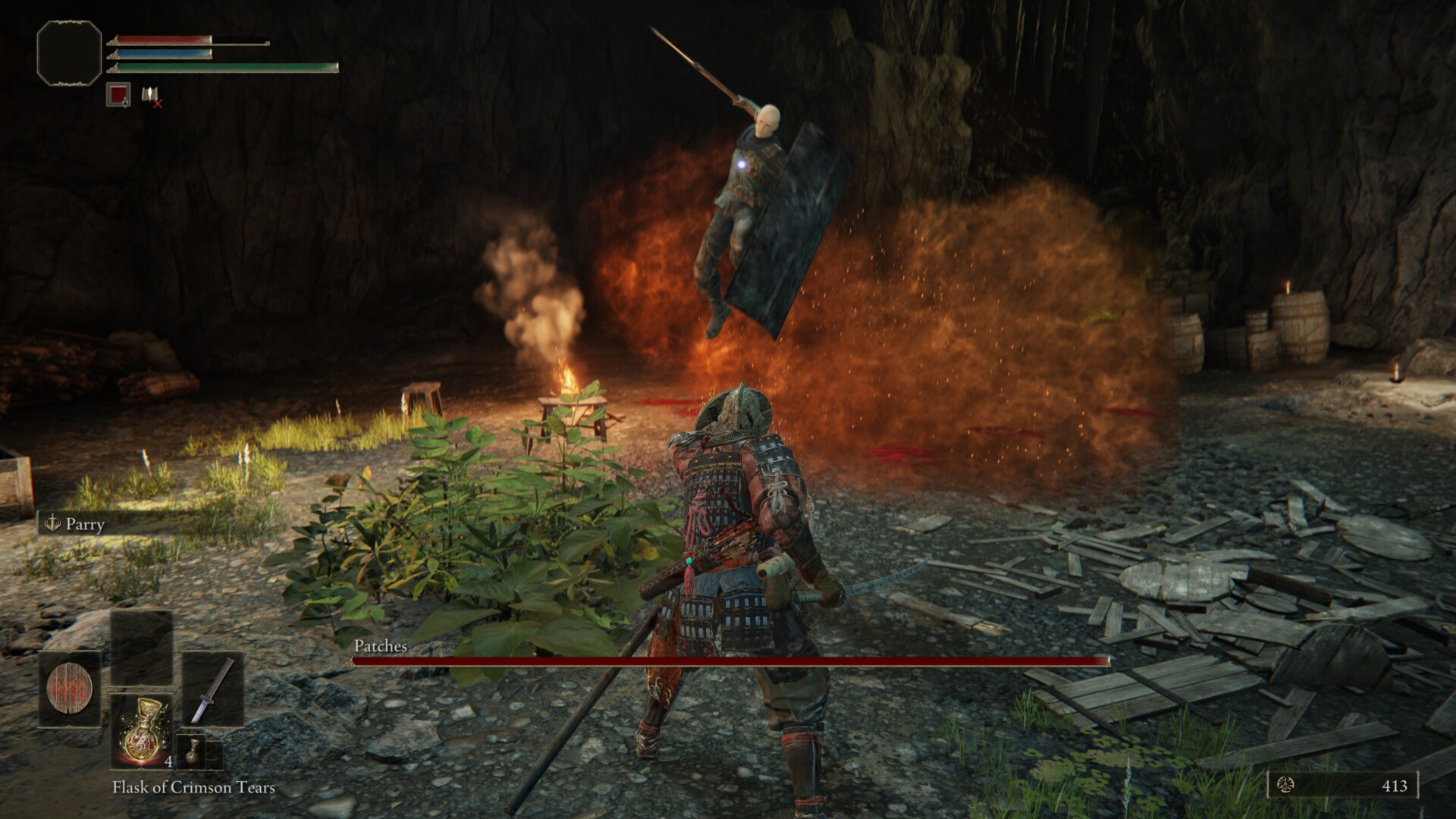 Face off against Bloody Finger Nerijus and a boss named Patches in Elden Ring.