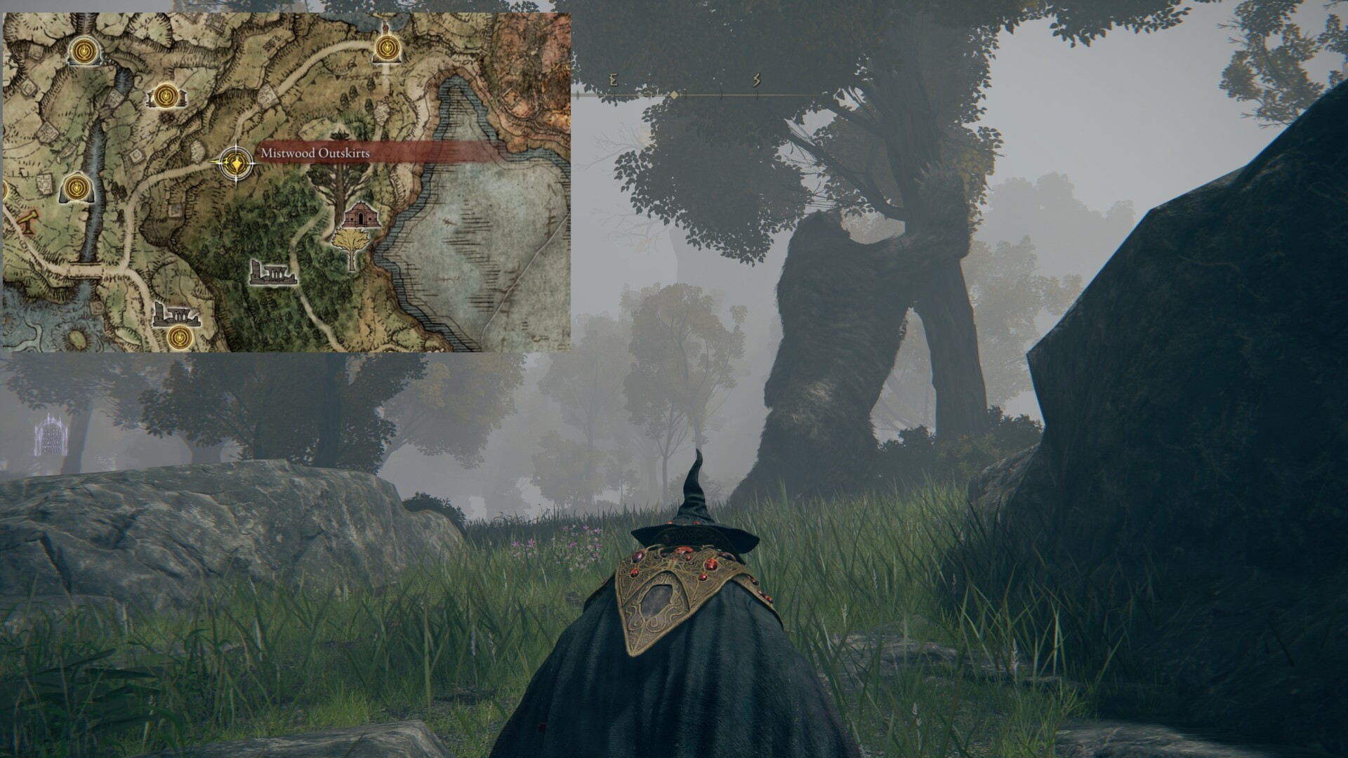 While talking to Patches, you’ll notice that there’s another chest near him. Remember what happens to people who steal? Well, if you open the chest, you’ll get ensnared in a transporter trap. You’ll get teleported to Mistwood in eastern Limgrave, right behind a giant bear.