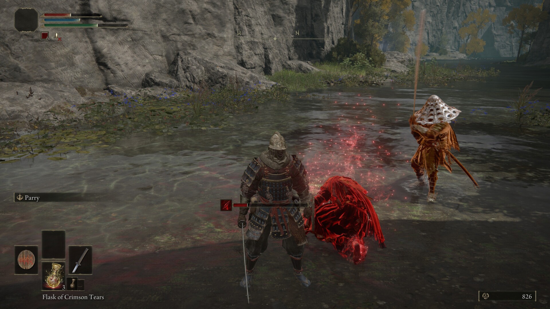 He has fast attacks that afflict you with the bleeding status. Once the bar is full, your character will experience Blood Loss, getting your HP depleted severely due to hemmorhaging.