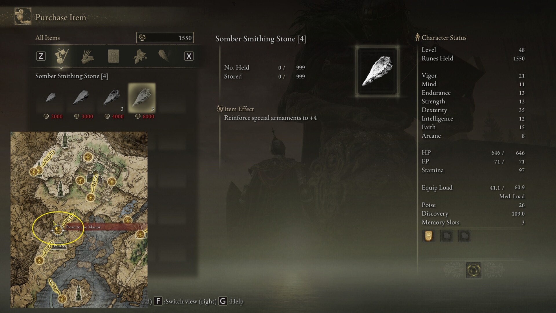 He sells Somber Smithing Stones as well, though they’re fairly limited.