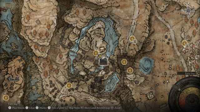 From the Highroad Cross Site of Grace, head west towards the small body of water and then south to reach the area behind Castle Ensis. The above image is where you should be on the map.