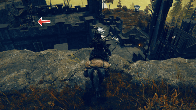 Once you reach this location, you’ll be above Castle Ensis and your next job is to drop down onto the roof. Make sure you drop down on the right side of the Castle, since the left side isn’t connected to where the Carian Sorcery Sword is located and you’ll have to repeat the process.