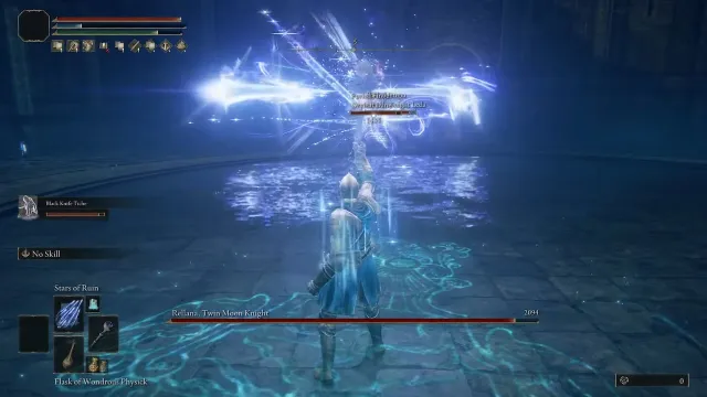 You’ll know when phase 2 begins when Rellana’s twin blades light up, one a fiery red and the other a bright blue. This is when her usual attacks will become more frenzied and brutal. When she summons spectral daggers, she’ll summon double the amount, so be wary of those launching at you.
