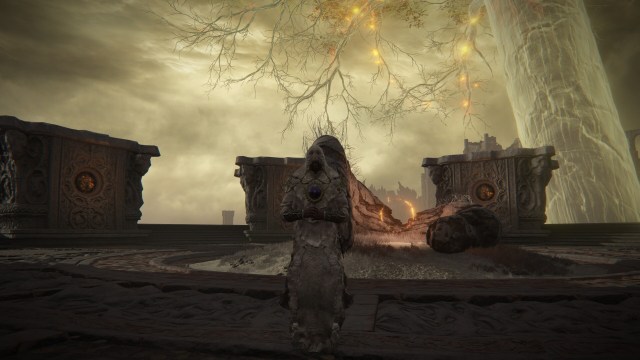 With the two equipped, you can interact with the teleporter in front of the bridge (there’s also another one at the other end, but it also takes you to the same place). You’ll end up inside Redmane Castle, the domain of Starscourge Radahn in Elden Ring.