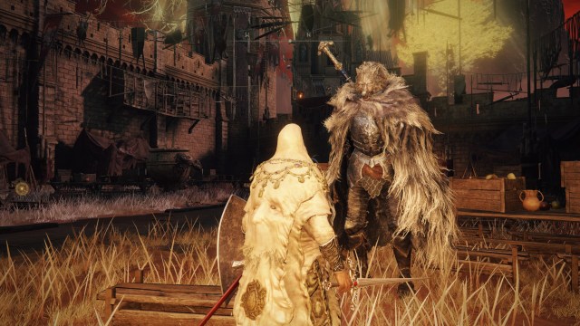 - You can talk to the herald back in Redmane Castle. The doors that were locked previously are now open. If you pass through the plaza going outside, there’s a boss encounter once you return. You’ll be up against a Misbegotten Warrior and Crucible Knight. You can also pick up lots of loot here as you explore.