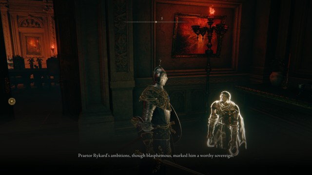 If you go to the hallway, you’ll see a ghost that’s kneeling down. He tells you that you have to slay Rykard the Lord of Blasphemy, and that he’s left a weapon that can destroy him. Likewise, the maid in the study tells you that she’s hearing sounds coming from the walls.
