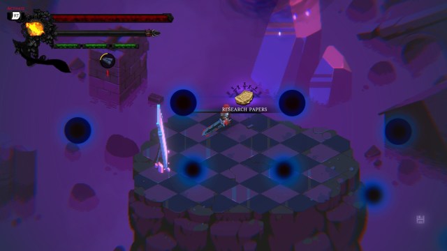 - Step 3: Negative Zone – This area has broken sections connected by floating platforms. You’ll also get bombarded by shadow orbs as you move around. From the initial spawn point, take a platform and go right, then up. You’ll find the Research Papers here. Bring this to the Alchemist.