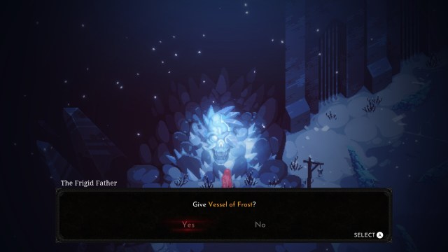 The Empty Vessel is a quest item that lets you collect the essence of a particular boss that you’ve already defeated. Just return to that location to pick it up. If you bring the filled vial to an NPC that you pledged to —and, yes, you can pledge to all of them first if you want — you’ll receive a special item/accessory/relic for your troubles.