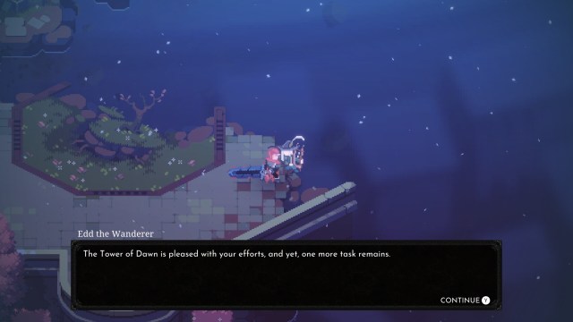 He won’t like any of the four choices. For instance, he says that the world will be bathed in flames if you picked the Kindled Heart of Fire. Alternatively, he’ll talk about how you’re serving the wrong master if you chose the Abyssal Eye. However, you can choose to forego the entire thing (i.e., don’t even pick up a vessel). When you talk to Edd, he’ll tell you how the Tower of Dawn is pleased with your efforts since you’re trying to achieve balance.