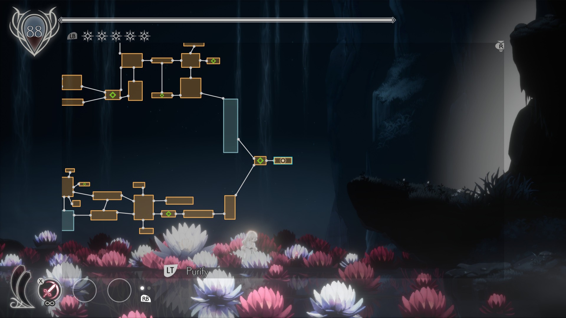 If you exit to the right, you’ll discover a field of flowers and a doorway with a serene glow. You can’t go through it, but you can purify the flower.