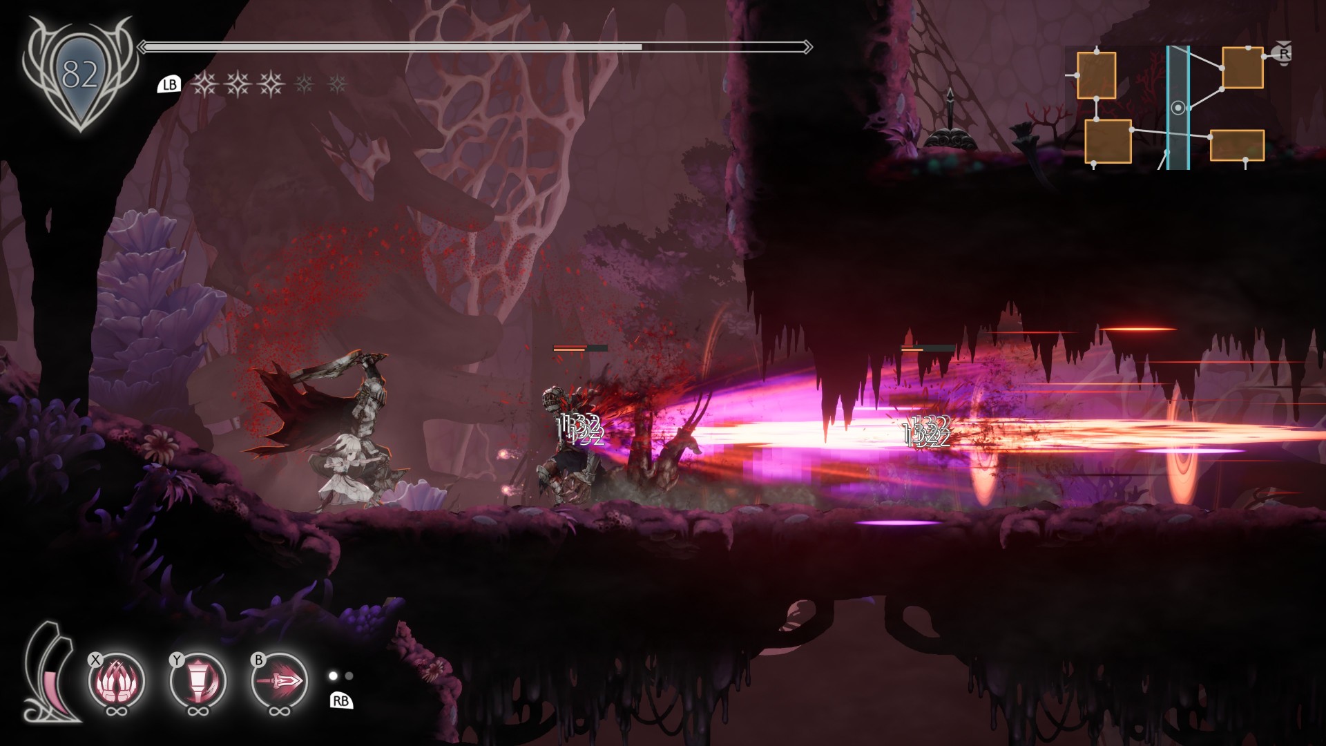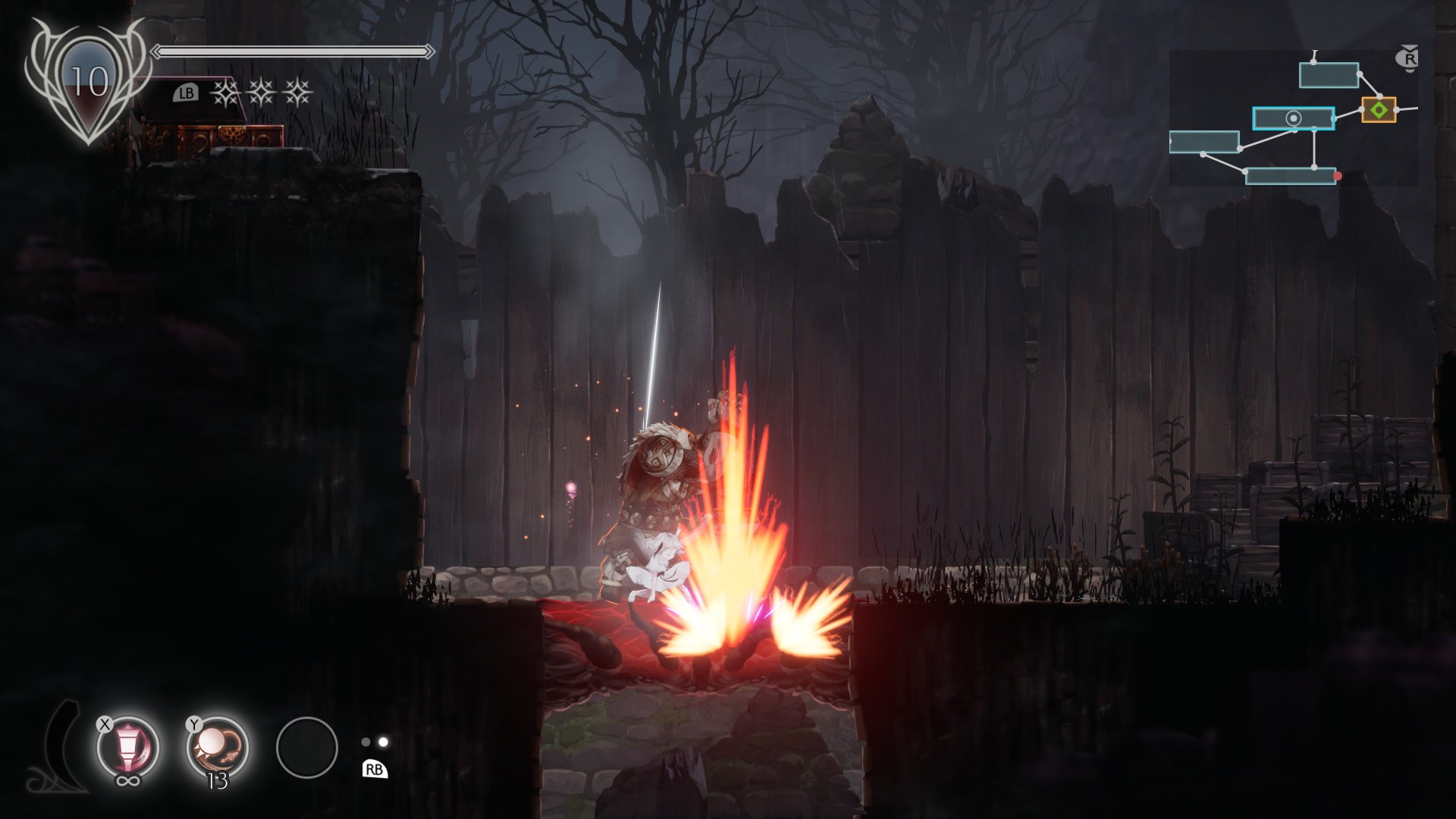 Bar none, this is my favorite spirit skill in Ender Lilies: Quietus of the Knights. While it’s true that the swings are slow (even the jumping worms will damage you because they move faster), the damage dealt by this skill is quite high. Most mobs will get annihilated in a couple of hits, especially if you max this out.