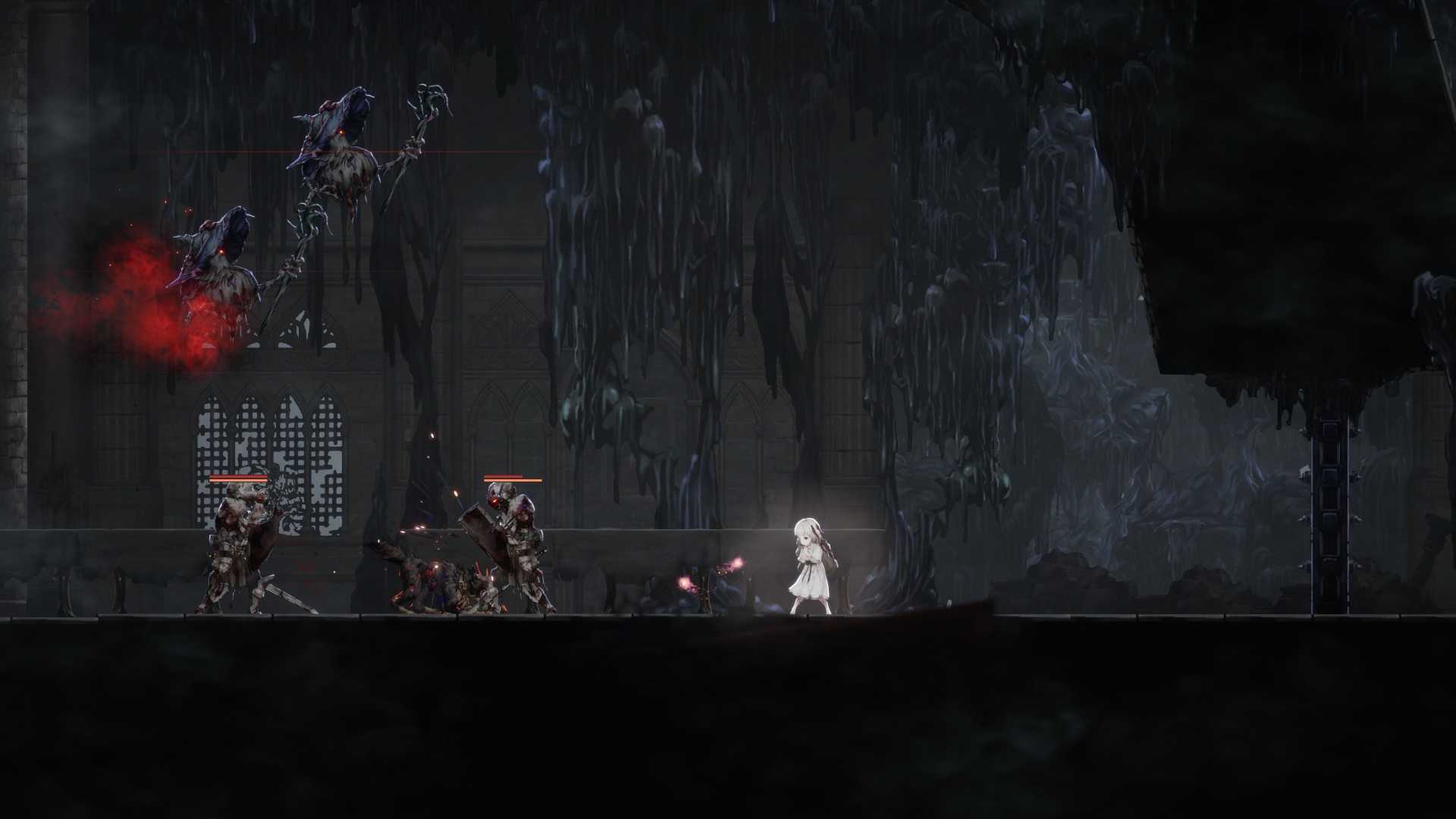 From time to time in Ender Lilies: Quietus of the Knights, you’ll encounter several shielded mobs in a room. These battles can be fairly annoying since you’re forced to parry and dodge a lot. Thankfully, you can spawn the Castle Town Maiden’s dog. It’ll run around and damage foes, and they’ll be none the wiser. There’s also another skill called Western Merchant (crow familiar summon), but I find that it’s a bit inconsistent when shooting fireballs.