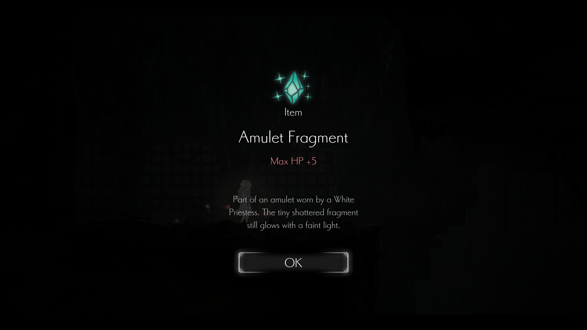 Later, once you have the wall climb ability, you can reach the top of the left side wall in this chamber. There’s a poisonous blob enemy here which drops 1x Amulet Fragment and 1x Amulet Gem.