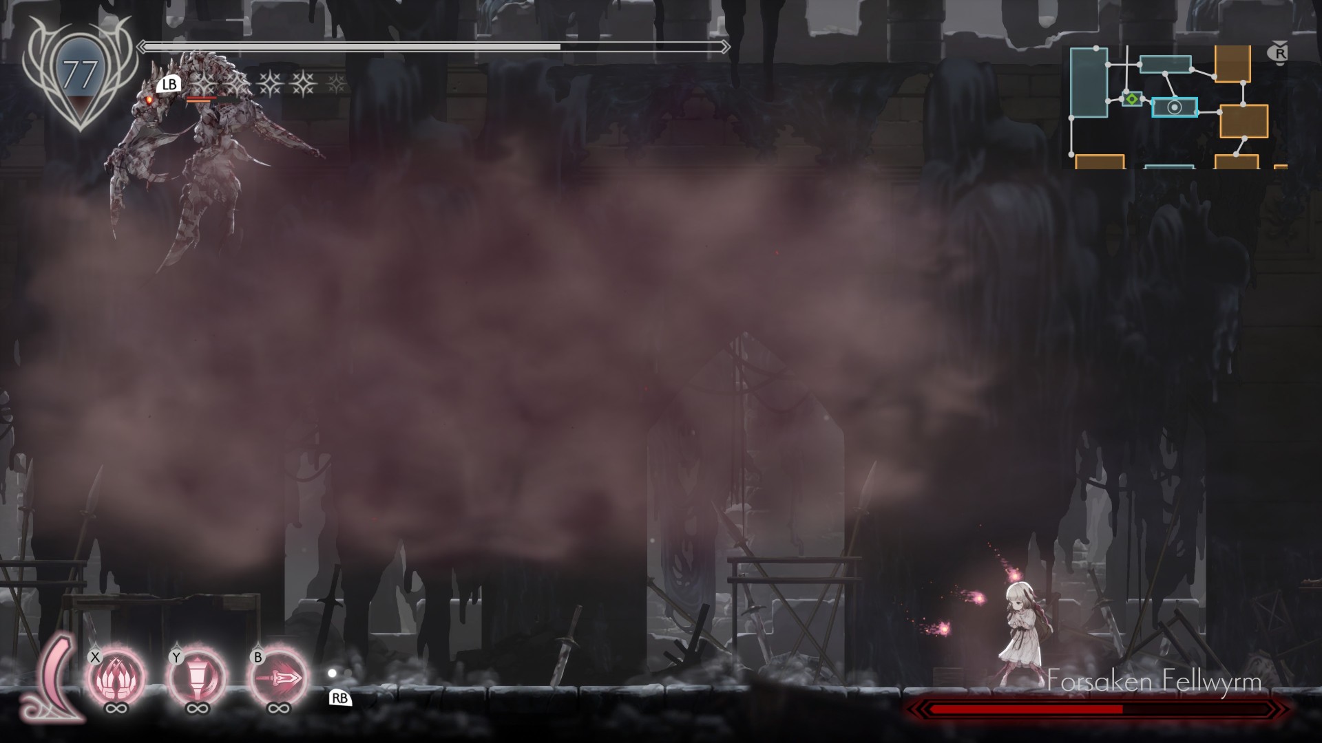 - Spirit skill/miniboss: Forsaken Fellwyrm – Gain momentum with the Spectral Lance and break open the pustulant wall.