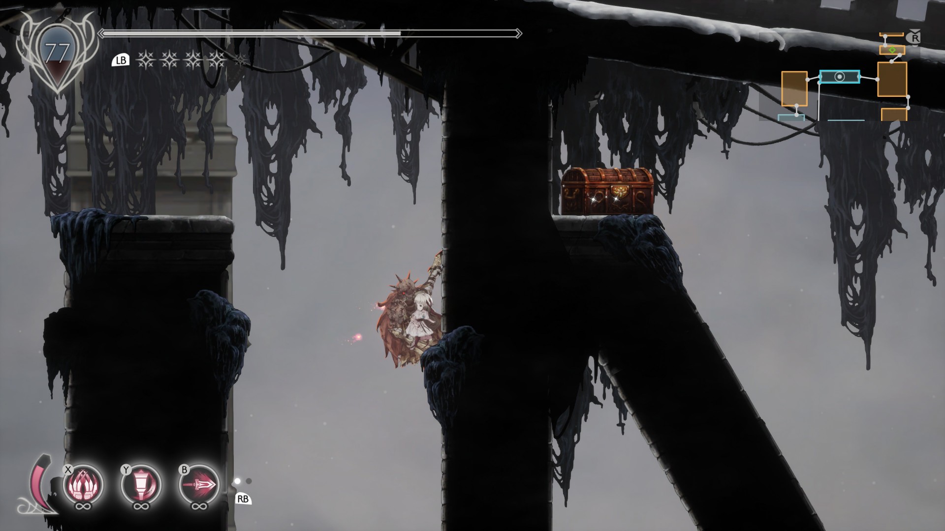 18. Boss fight: Ulv, the Mad Knight – You can pick up a Priestess’ Wish after defeating the boss by using the wall climb ability and going to the other side of the pillar.