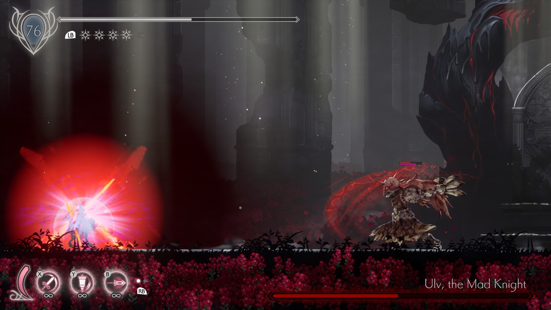 Let’s discuss the Ulv, the Mad Knight boss fight in Ender Lilies: Quietus of the Knights‘ Twin Spires level.
