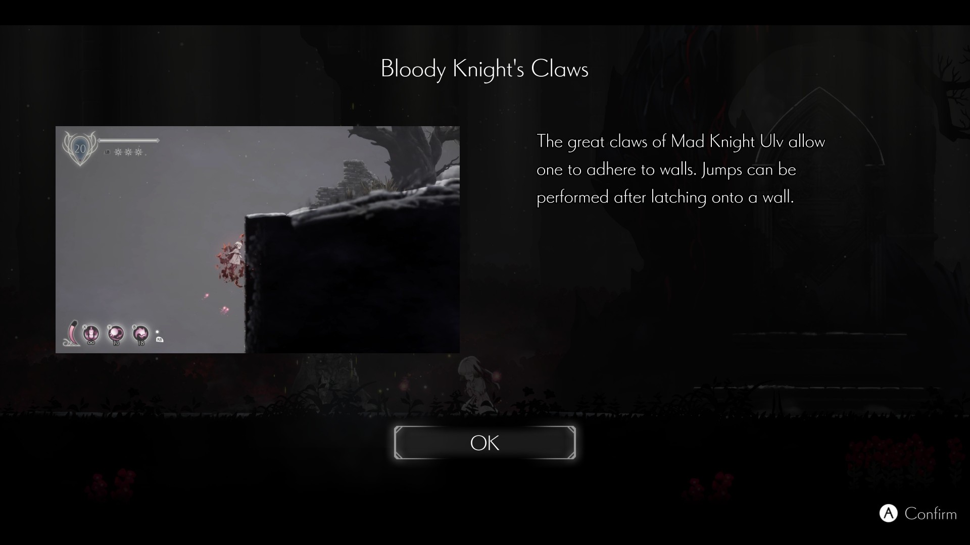 - Bloody Knight’s Claws – This is the wall climb ability. Simply move toward a wall and Lily will automatically latch onto it. This only works on flat surfaces, though, so you’ll still slide off from diagonal or sloping structures.