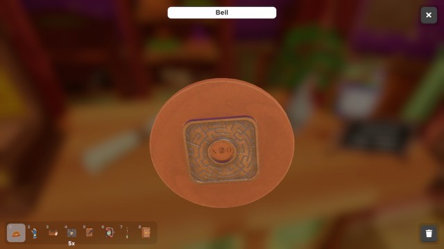 If you pick up the bell on the desk and inspect it, you’ll see at the bottom that it reads “x20.” You must click the dinger twenty times for the Token to spawn under it.