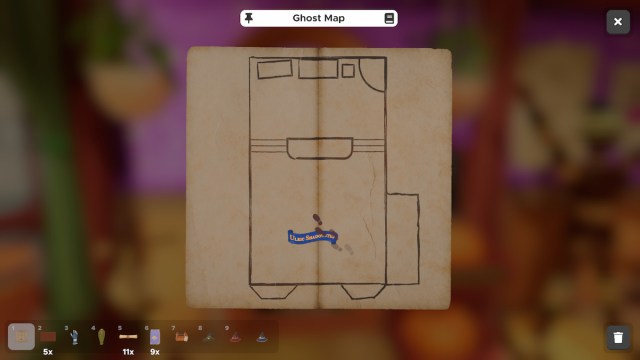 Using the Ghost Map we gained by solving the previous puzzle, we can watch as Shadowstep walks around the store. He will stop five times, and at each stop, we need to relate that area of the store to an item on the door. We will then number them 1 through 5 to unlock the door.
