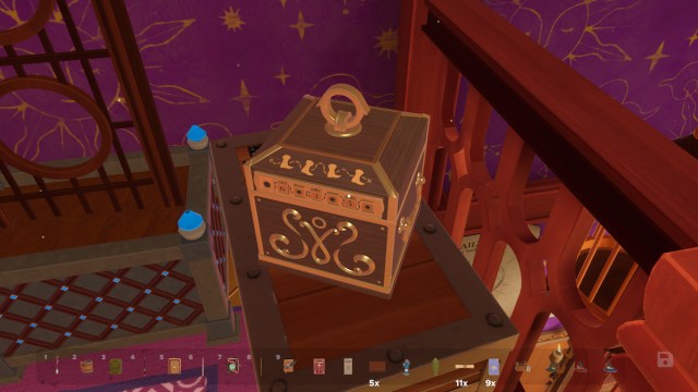 Upstairs, there are five more Chocolate Bars. Two on the trunk in the stairwell and three on the chest with the lockbox and Book of Wands. When you feed the five Wrappers into the Toy Summoner again, you’ll have summoned another Token.