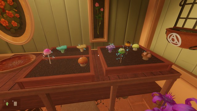 Right in front of you is a table with Mushrooms growing in boxes. There is a note that details the process of making a Size Potion using said Mushrooms.