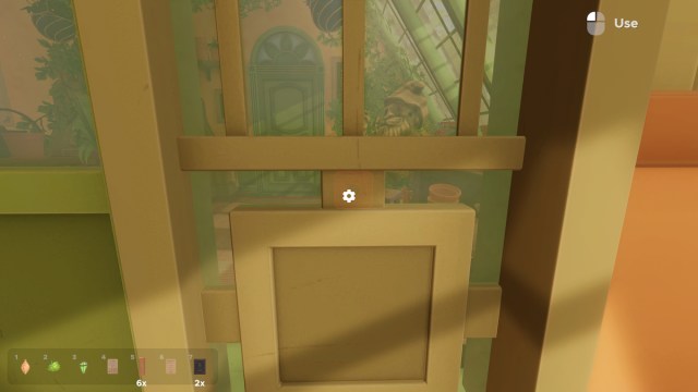 The Gnome Ear is tucked away in a cabinet placed high up in the first room above the plant pots on the wall. Place the Giant Ladder on the floor. You can walk up the Giant Ladder to reach the cabinet, open it, and claim the Giant Gnome Ear.