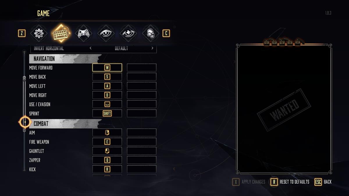You can fully rebind mouse and keyboard buttons and the mouse can be used to interact with everything in the menus. On the other hand, controller buttons mostly can’t be freely set. You can switch a few things around, but you won’t be able to customize, which was an odd choice.