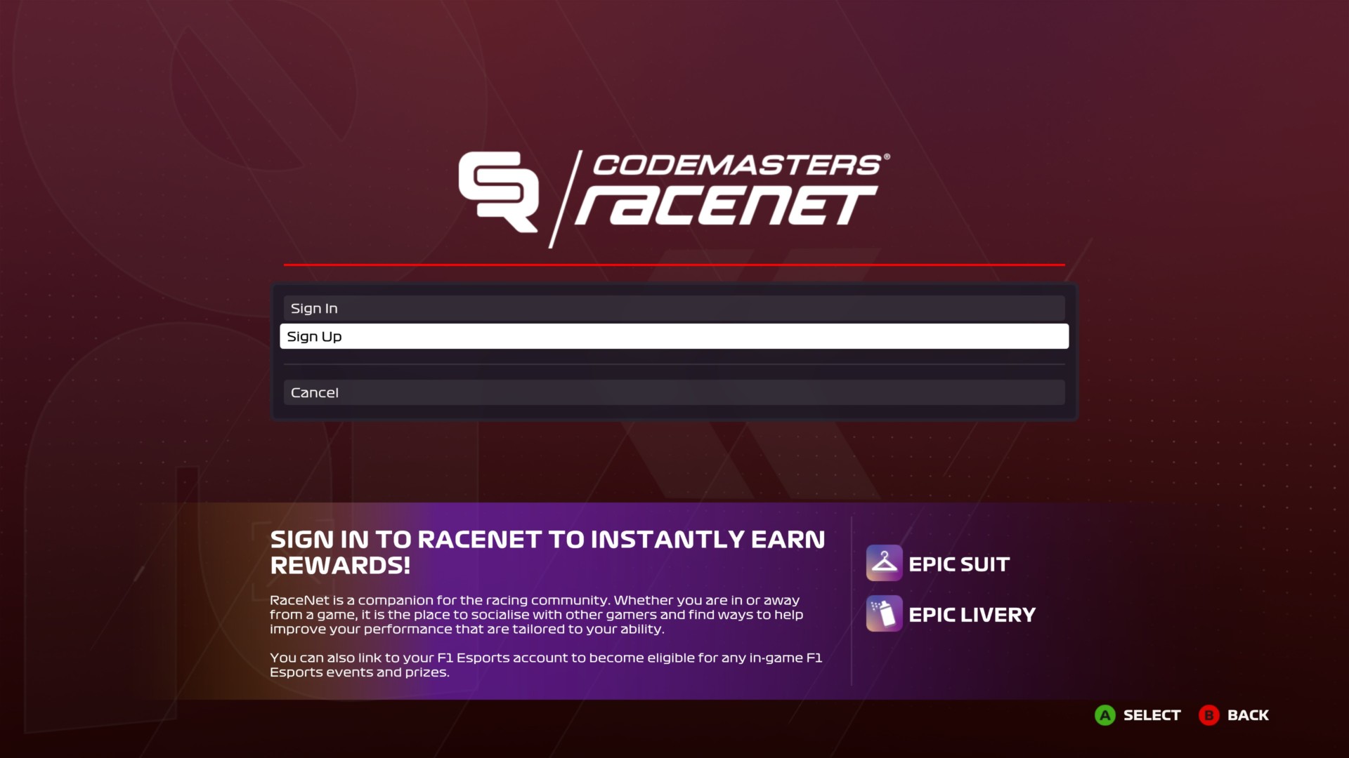 Likewise, you can sign up for RaceNet to get an additional car livery and driver suit. You can use an alternate email if you want, but you do need to access it to verify your account in order to obtain the cosmetics.