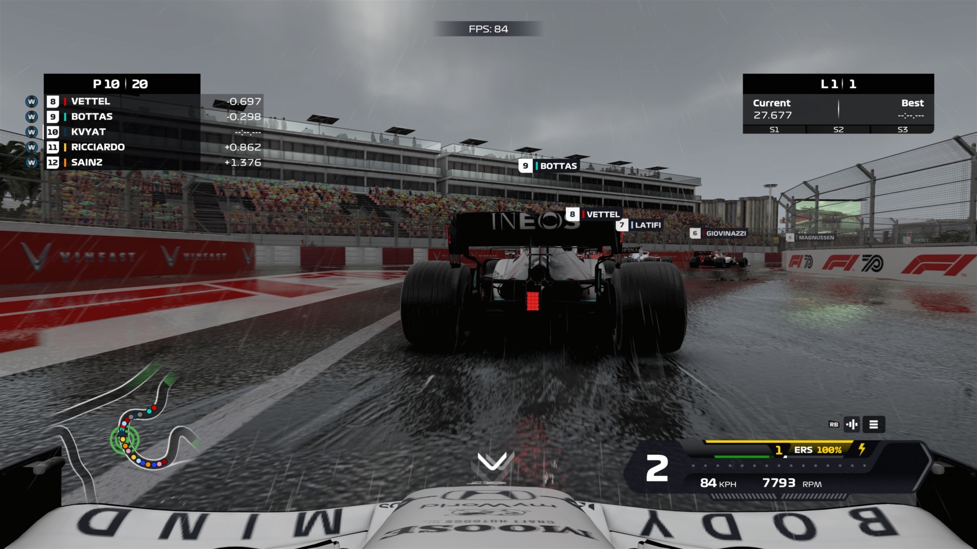 Those are just for the ultra high vs. the ultra low preset while racing in Hanoi (one of two new tracks in F1 2020, the other being Circuit Zandvoort in the Netherlands). You’ll notice how the ultra low preset basically just looks like a drizzle whereas the ultra high preset will completely drench your POV. The latter definitely adds to that level of immersion (and challenge) as you navigate each circuit.