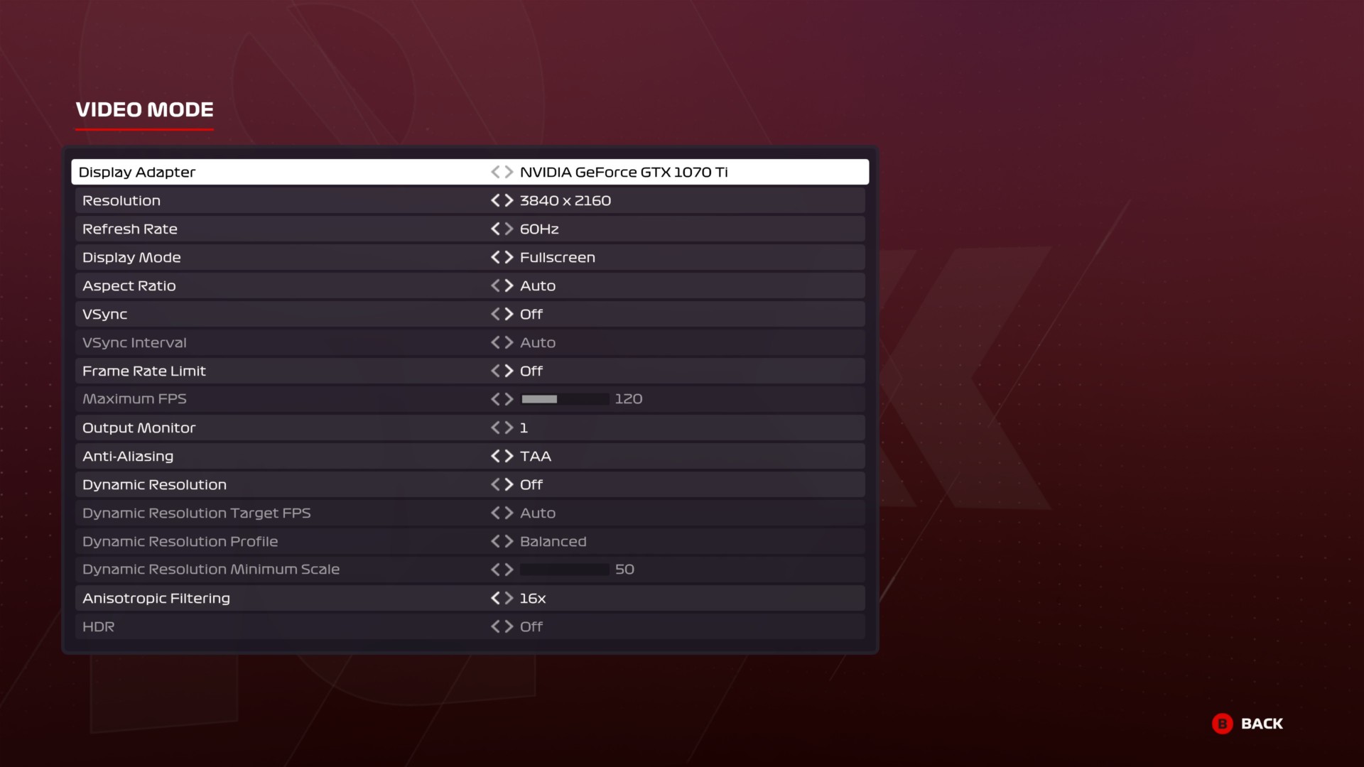 These are the options under video mode which includes FPS limits, anti-aliasing, and dynamic resolution and HDR if you’d like to enable those: