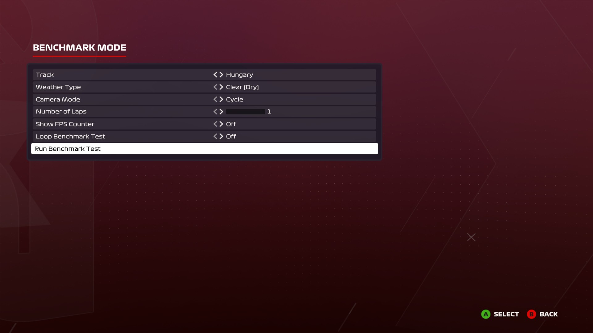 Next up, let’s talk about F1 2020‘s in-game benchmark tool which you can run via the graphics options panel. The benchmark panel even has additional choices allowing you to pick the track, weather, number of laps, camera angle, and the FPS counter.