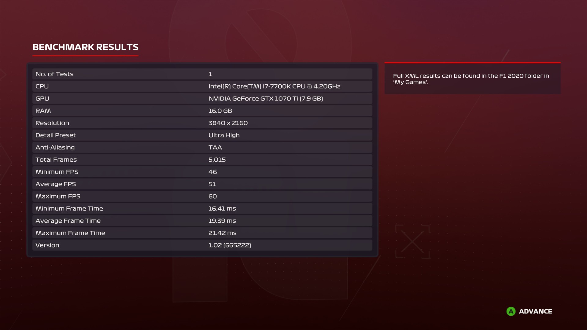 You’ll see F1 2020‘s graphics settings below (take note of the in-game benchmark tool which we’ll get to later):