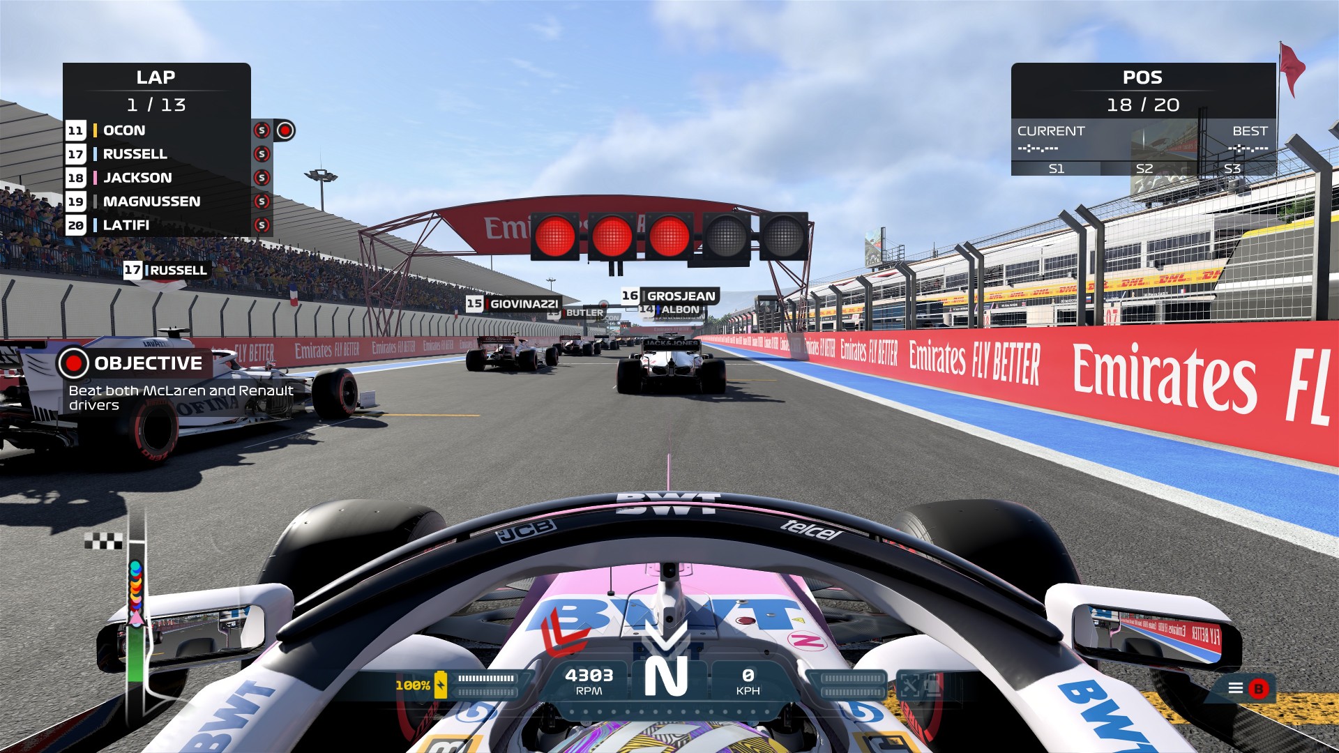- Objectives: You have to beat the McLaren and Renault drivers.