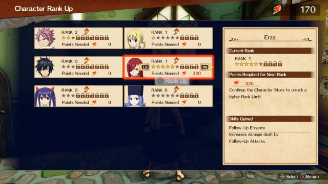 Likewise, each rank-up in Fairy Tail requires a specific number of Fairy Points (which are obtained when you complete guild requests). The character ranks system also follows a few similarities among all the peeps you recruit in-game: