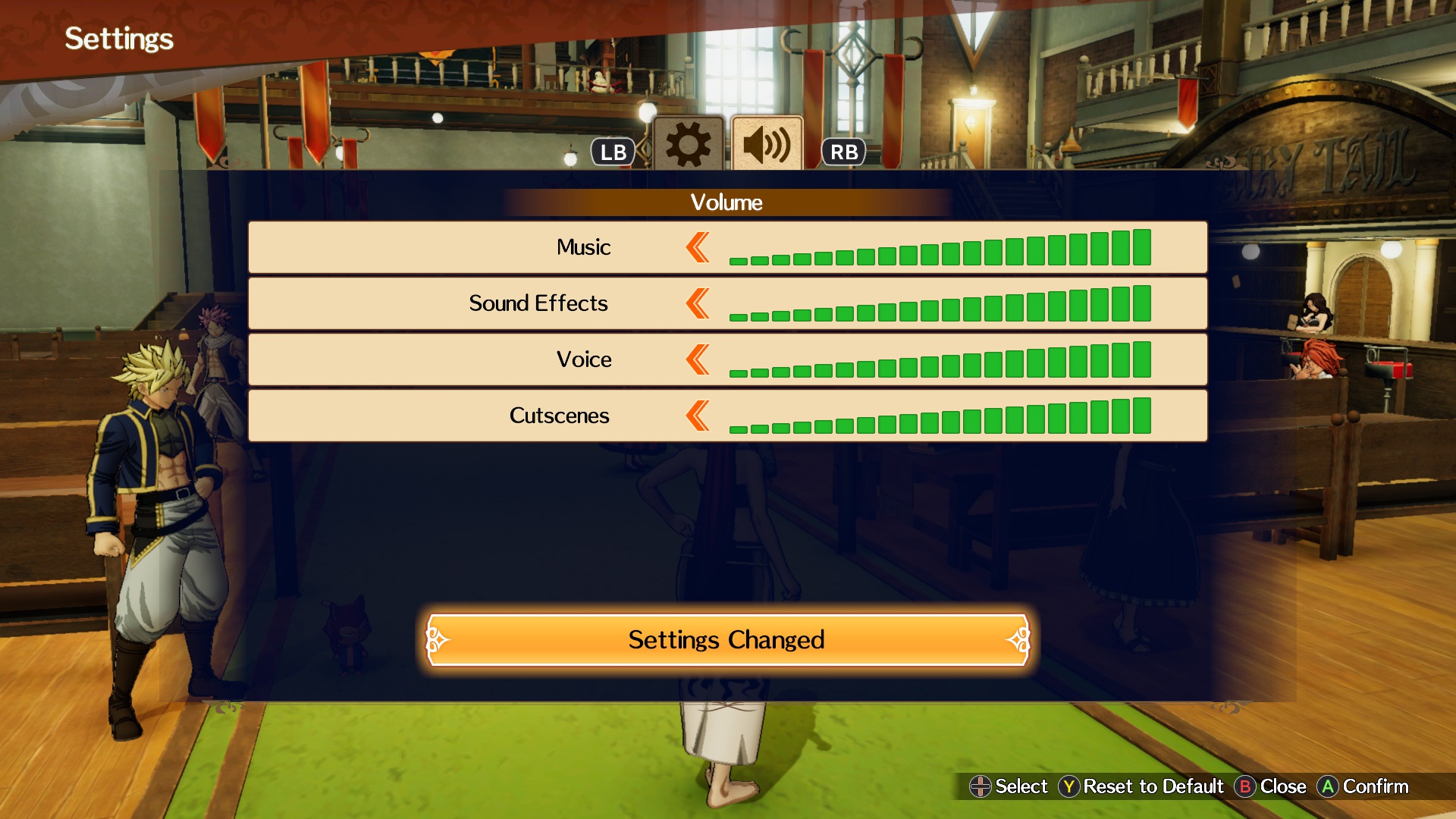 There’s not too much to say here but these basic four settings do work well enough all things considered. Obviously, there are no multiplayer options like having a push to talk wouldn’t make much sense. On top of basic audio settings, you can also set your user interface to one of six languages. These are English, French, Simplified Chinese, Traditional Chinese, Japanese, and Korean. All voicing is native Japanese and accurate to the anime. Unfortunately, fans of the dub will have to explore Fiore with the original voice acting as there is no support for English voices.