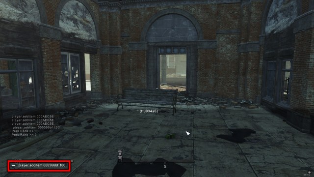 Type in player.additem 000366bf 100. Press Enter once, then Tilde to close the Console. The command drops 100 Dirty Water’s into your Inventory. Don’t worry, I won’t tell.