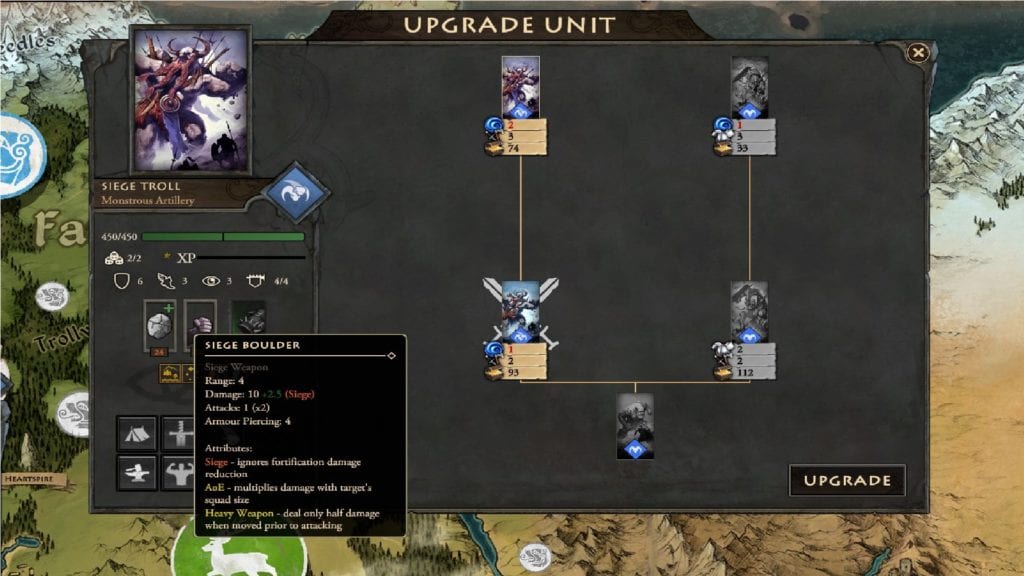 Troll Pups can be turned into Troll Hurlers and, eventually, into Siege Trolls. Both Troll Hurlers and Siege Trolls can throw boulders at enemy units from up to four hexes away. They can do even more tremendous damage if they don’t move prior to attacking due to the heavy/siege weapon classification. It’s possible to take an entire squad of enemy units from full health to less than half (or outright kill them) from a single lobbed boulder.