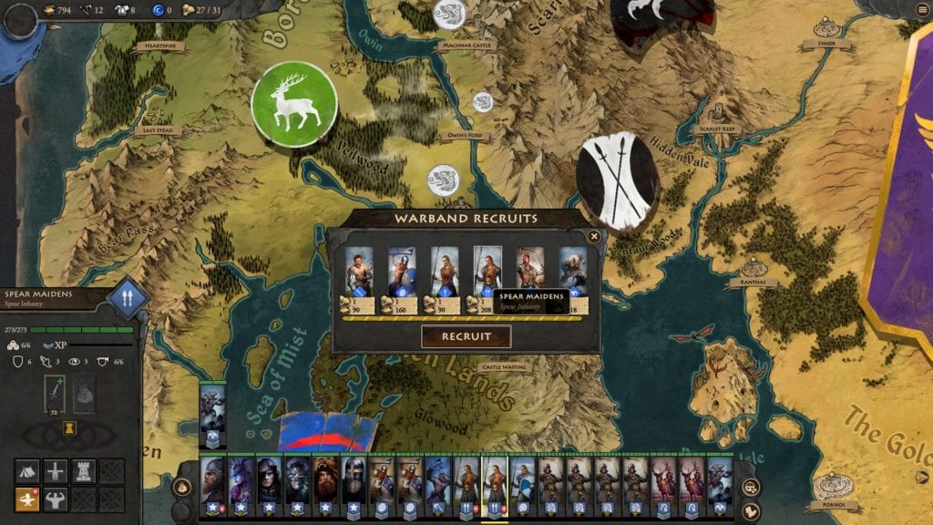 Early on in Fantasy General 2, you can only recruit the baseline unit types such as Younglings, Maidens, and Troll Pups. Recruitment would cost gold and each units needs available supply points so they can be fielded. As you progress further during the campaign, you can recruit slightly higher-tier units that cost a bit higher. Each unit also has a supply requirement (with troll units taking up the most space). You can increase your supply limit via some of Falirson’s perks.