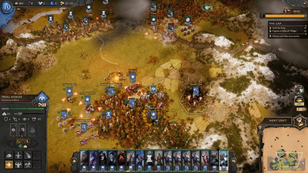 The game’s mechanics are fairly easy to learn. You’ve got your usual hex-based unit placement, one-tile melee attacks, ranged attacks from two to three hexes away, and you’d even spot some siege units that can obliterate opponents from further away. Units have one movement point and one action point (attacks or spells), and some have a free action such as razing a settlement on the tactical map.