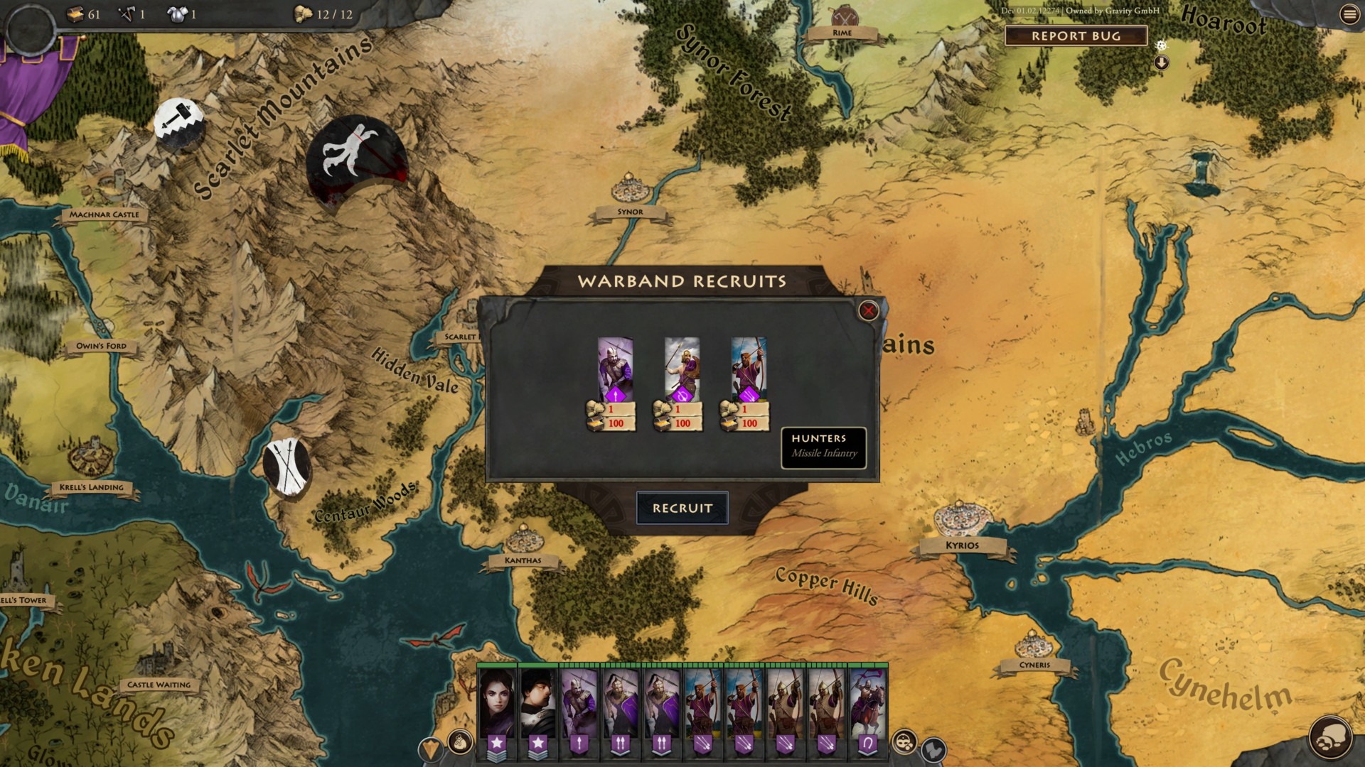 Before we discuss the characters in Fantasy General II: Empire Aflame, let’s talk about the units first. By default, you’re able to recruit three kinds of Empire units: Spearmen, Peltasts, and Hunters.