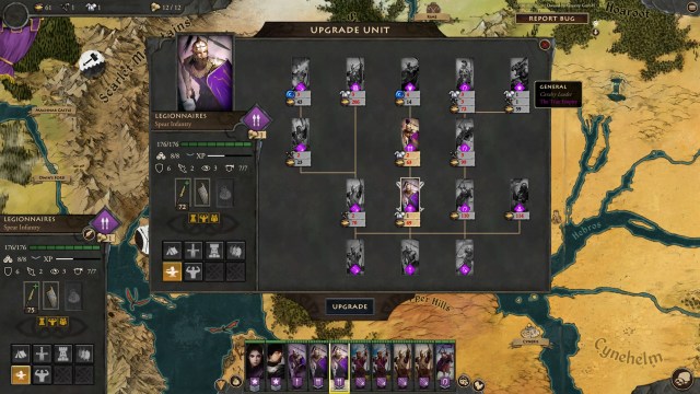 All three basic units can be upgraded to the next tier (Bowmen, Legionnaires, Border Riders, and Acolytes). However, specific paths will lock you out of other options.