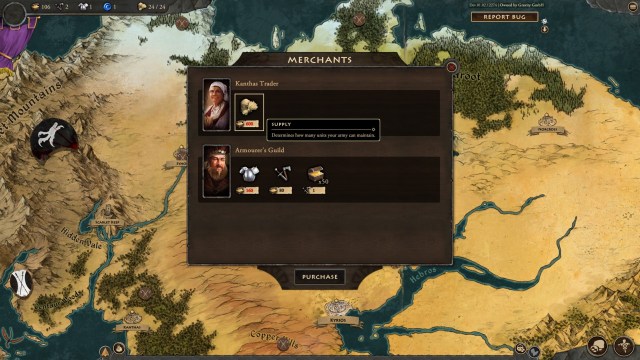 To speed up your campaign’s progress in Fantasy General II: Empire Aflame, you’ll also find vendors that sell resources. You can spend gold to obtain weapons, armor, and supplies. Likewise, you may exchange these resources for gold.