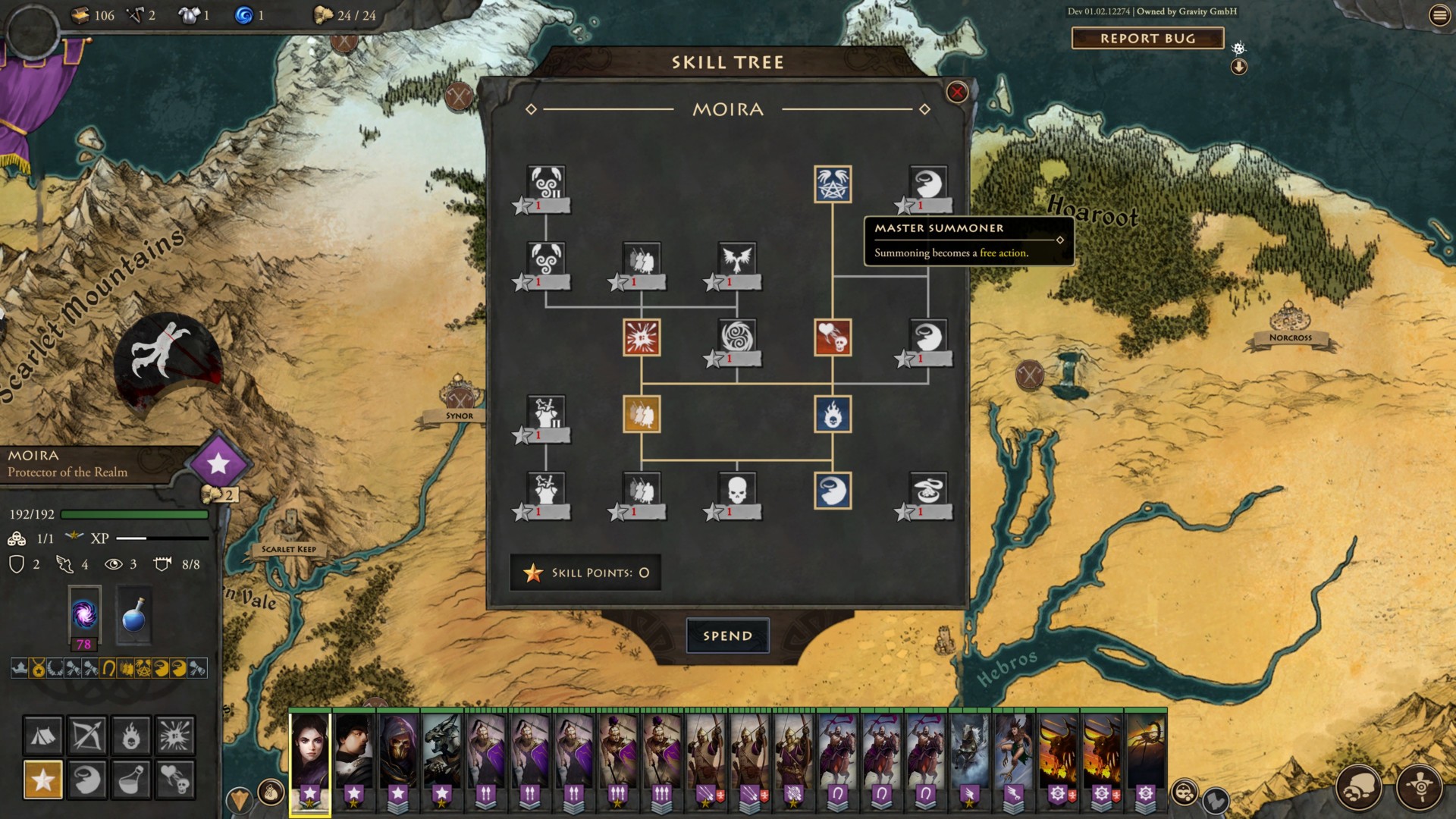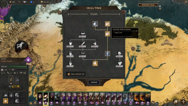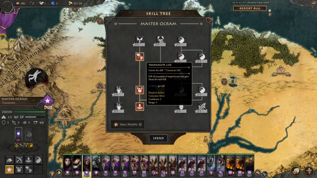 Moira has amazing skills that’ll be integral throughout your Fantasy General II: Empire Aflame playthrough. She has several perks that let you start all battles with Skeleton Archers and Skeleton Infantry. She can also turn an undead ally into a ticking time bomb. Meanwhile, the Master Summoner perk lets you summon new units as a free action, and there’s also the Transmute Life spell (more on this in a while).