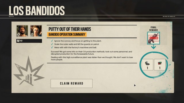 Finally, another reliable way to get gunpowder, Supremo-bond, and other rare materials in Far Cry 6 is to complete Los Bandidos missions. Certain multiple-choice options, and even the final reward, would net you these resources. Likewise, it’s possible to pick a standard weapon as a final reward. If you managed to obtain that weapon through other means (i.e., NPCs or opening caches) before finishing the task, the game will grant you gunpowder or Supremo-bond instead.