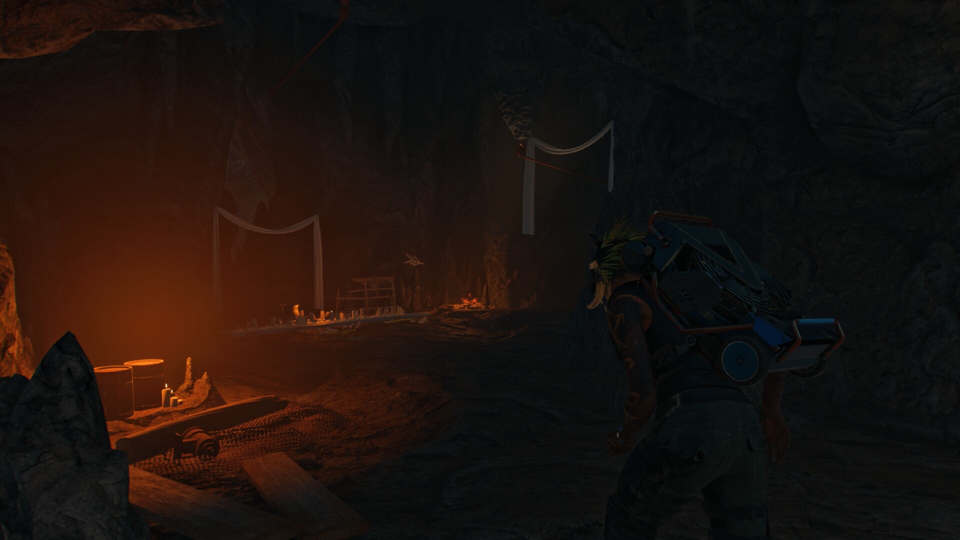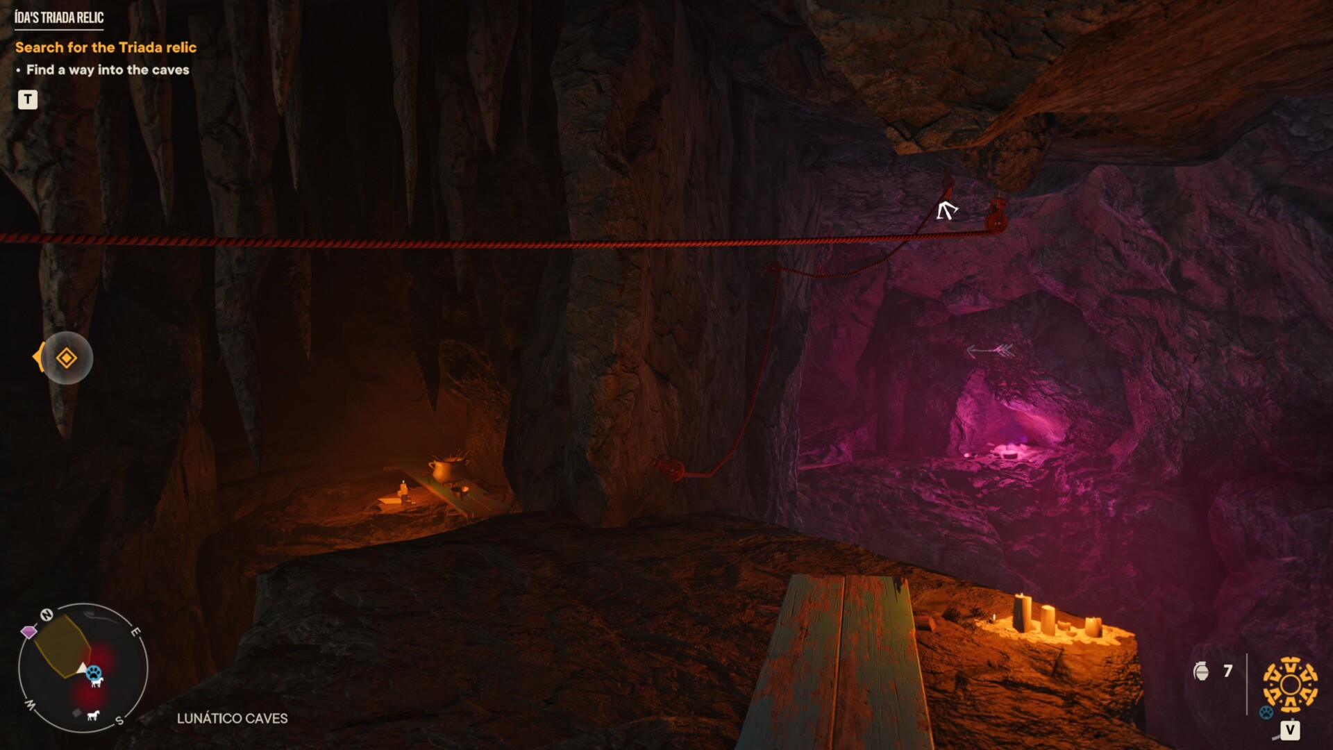 From here, use your grapple and the vines to climb to the top. You’ll eventually reach a cave system.
