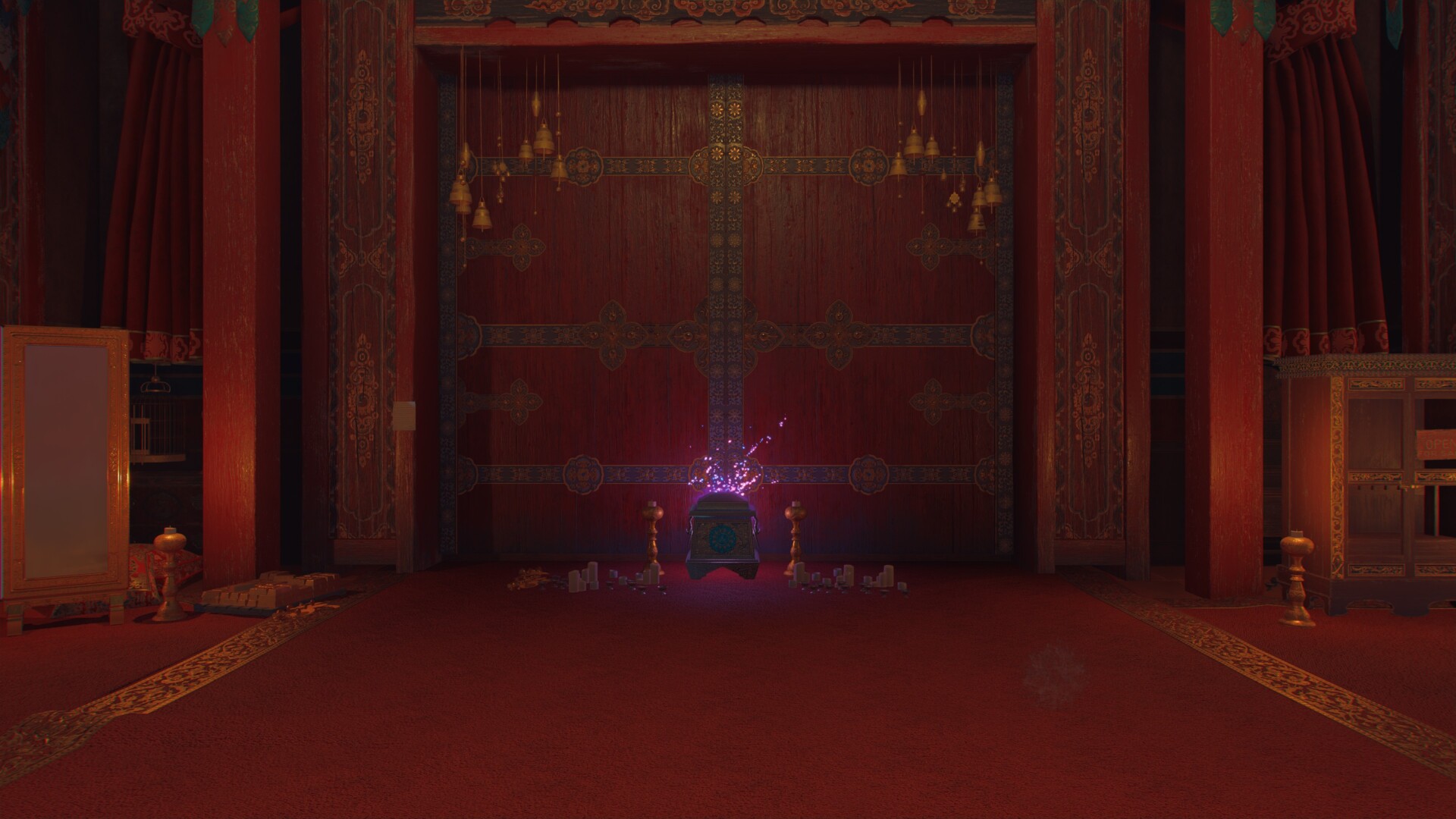 After grabbing what you need, go up the stairs and open the door. You’ll get teleported to a serene environment filled with lush vegetation, calm waters, and tranquil surroundings.