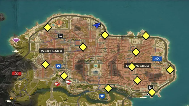 The map below shows you the locations of the Gabriel statues in Far Cry 6. For reference, several of these are along the waterfront/highway outside the restricted zone. Others, meanwhile, are inside the restricted zone itself. You’ll need to use sewers, rooftops, and alleyways to reach them. Here are some suggestions: